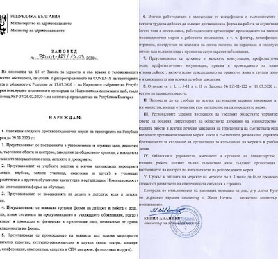 Zapoved Na Ministra Na Zdravoepazvaneto Za Vvezhdane Na Novi Protivoepidemichni Merki Vlizashi V Sila Ot 00 00 Chasa Na 21 Mart Infoz Bg Novini Video Izdatelstvo